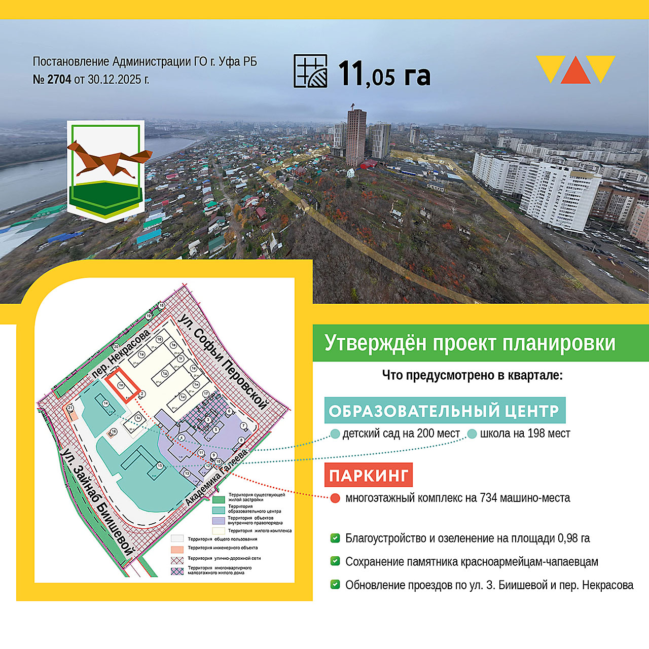 Администрация Уфы утвердила проект планировки и межевания территории площадью 55,97 га, ограниченной проспектом Октября, улицей Блюхера и местным проездом. Проект примечателен тем, что он полностью исключает строительство новых жилых домов, фокусируясь исключительно на развитии социальной и транспортной инфраструктуры для 9,4 тысяч жителей микрорайона.